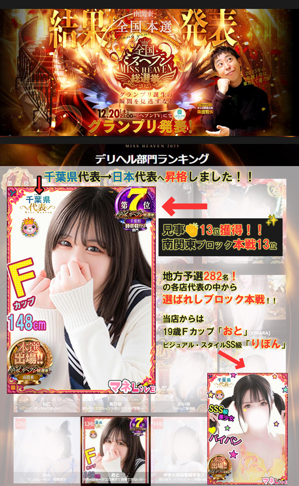 有名単体AV嬢から現役モデル・人気のギャル系・お嬢様系・素人美少女まで新人続々入店中!船橋・西船橋エリア支持率NO.1☆女の子レベルに自信あります!本日も様々なタイプのハイレベルな女の子が多数出勤しております!